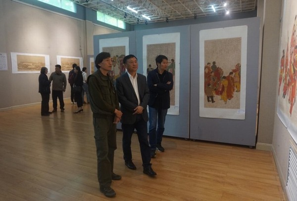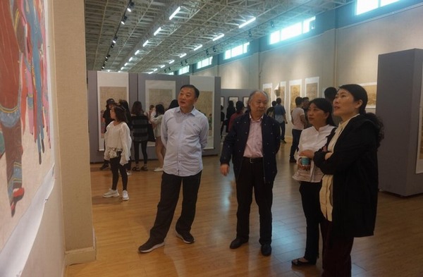 开幕式结束后,全体来宾和百余名师生相继到展厅观展。此次画展以“至诚无息”为主题,共展出作品120余幅,其中以国画为主,分为临摹、写生、创临、创作四个单元,书法作品点缀其中。作品覆盖人物、山水、花鸟等丰富种类,审美取向上更多地倾向于自然、朴素、厚重的表达,展现了作者对“乡土”题材的喜爱,对“草根”大众真挚的情感。表现手法上,以己为主、博观约取,对不同的题材做出相应的艺术处理,创作出色彩感较强的、具有壁画效果的作品,参展作品从不同侧面展现了作者全面的艺术素养,也在一定程度上还原了作者由技入道的艺术修习之路。