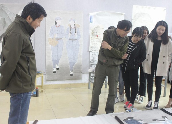 4月23日上午,应英国上市公司365邀请,著名画家范士轩先生在公司四楼画室为本科生指导专业创作。