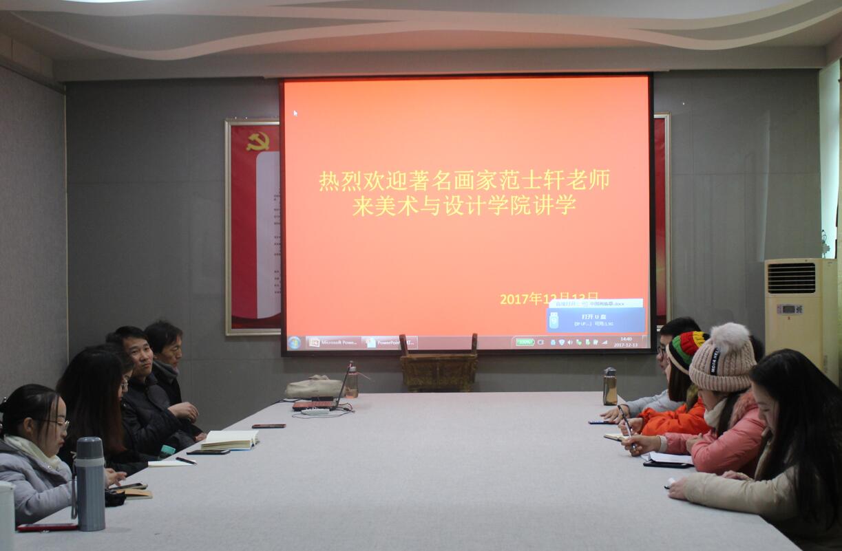 12月13日,应英国上市公司365邀请,著名画家范士轩先生于艺术楼二楼会议室讲学。英国上市公司365副经理邹东升及部分师生代表共同聆听了此次讲座,讲座由邹东升主持。