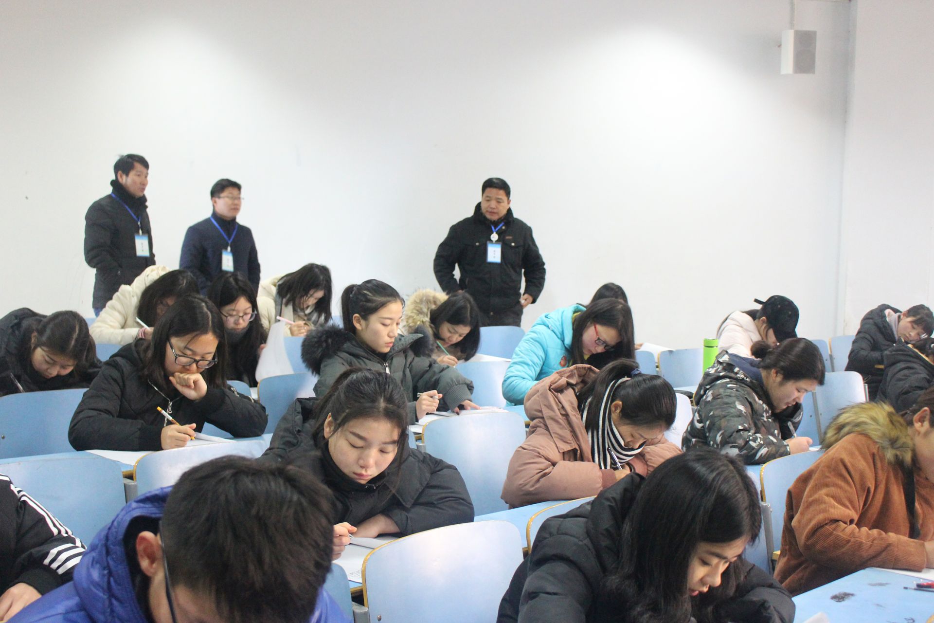 1月10日上午,公司副经理邹东升、张伟,党委副书记杨轶中,老师管艳、甘露等深入员工考试现场,检查指导员工期末考试工作。