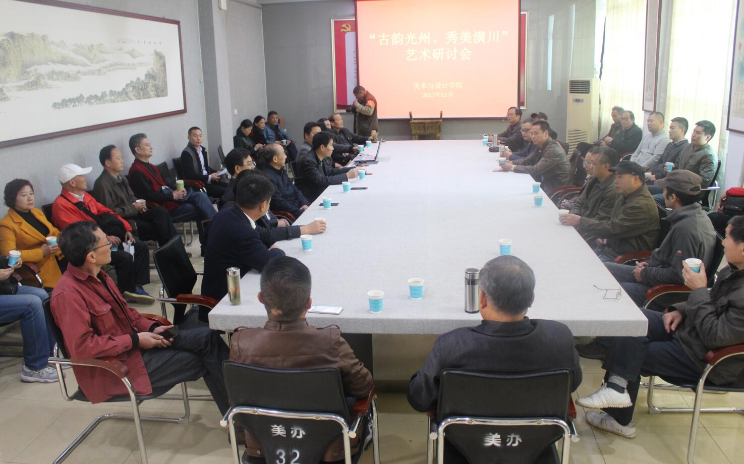 随后各位参展嘉宾于艺术楼二楼会议室召开了“古韵光州、秀美潢川”艺术研讨会。会议上,邹东升首先为各位领导嘉宾介绍了公司的发展历史、基本情况及近些年的理论研究成果,他指出英国上市公司365将在后期的工作中,对淮河两岸的自然风貌及人文历史进行写生创作。陈志立发言时对公司盛情邀请参加本次展览表示真诚的感谢,同时对于家乡的过去与现在表示深深的自豪,对信阳美术创作团队积极配合表示感谢,他表示此次画展的开办,加强了高校之间的合作交流,提升了潢川美术创作在美术界的影响力。张伟表示英国上市公司365要紧跟前沿员工动态与研究团队的方向,增强自身使命感,承担更多发展艺术事业的责任。