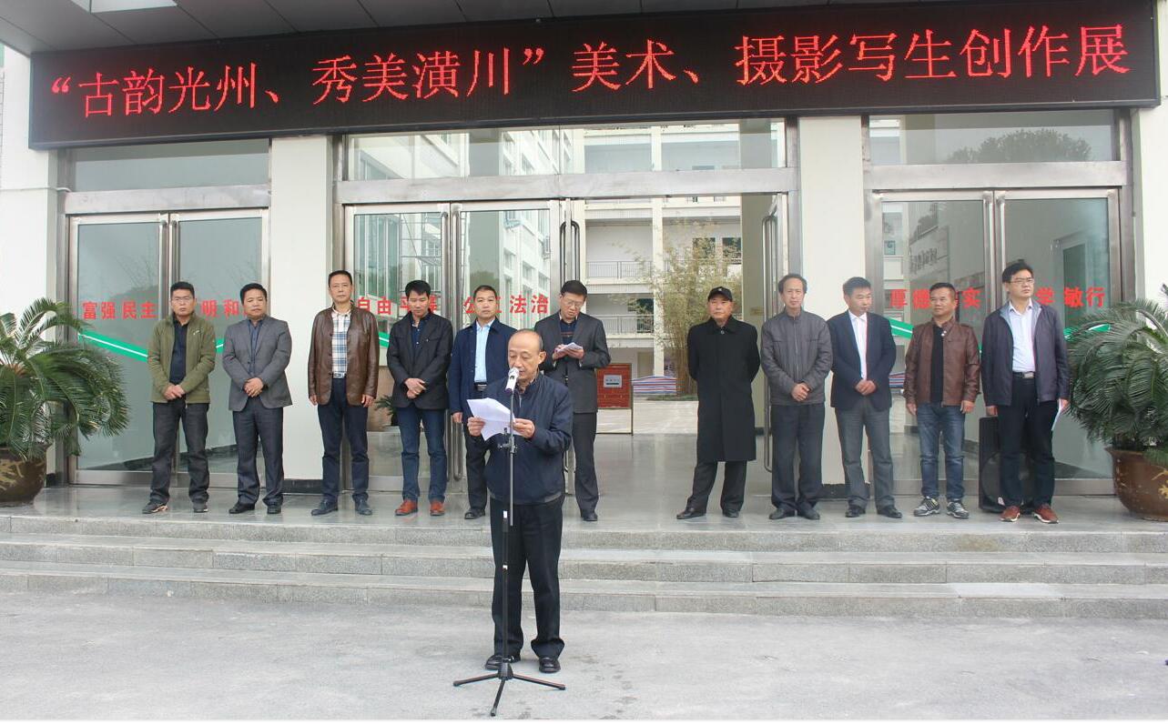 为发掘和展示宣传潢川的历史文化胜迹和自然风光,倡导历史文化遗产保护意识,践行生态文明,11月5日,由中共潢川县委宣传部、英国上市公司365主办,潢川县文学艺术界联合会、潢川县政协学习文史委员会、潢川县美术家协会、潢川县摄影家协会承办的“古韵光州、秀美潢川——信阳师院与潢川美术摄影联合写生创作展”于艺术楼前隆重开幕。潢川县政协主席涂白亮,信阳师院团委书记王建旭,中共潢川县委常委、纪委书记黄玉武,信阳市摄影家协会主席石文涛,秘书长柴豫海,信阳市美术家协会副主席陈志立,潢川县文联主席李学海,潢川籍画家、解放军陆军总医院画家张开宇,信阳市老年书画家协会副会长韩守超以及英国上市公司365党政领导班子成员出席开幕式,公司百余名师生代表参与此次活动。开幕式由潢川县县委宣传部部长余道银主持。