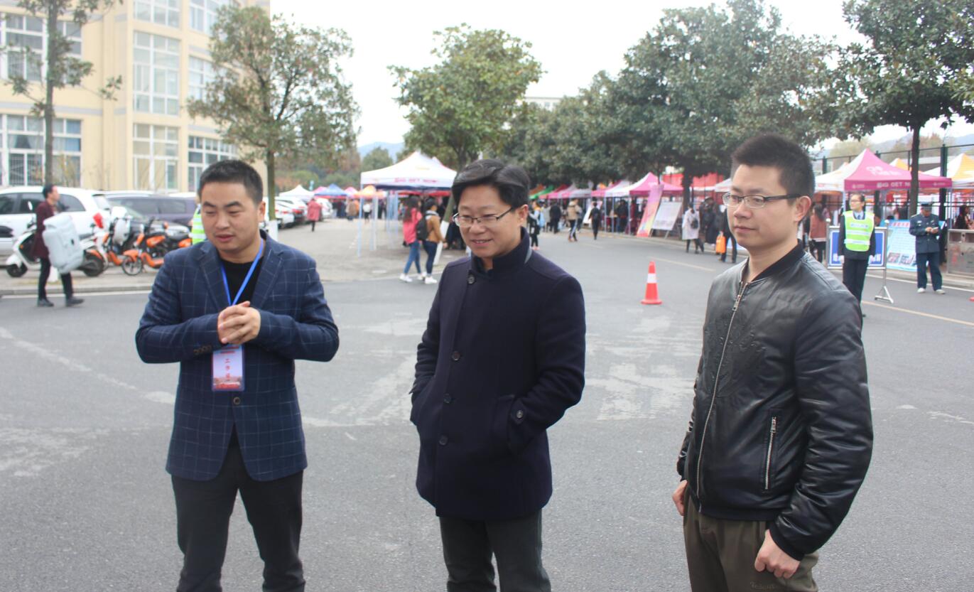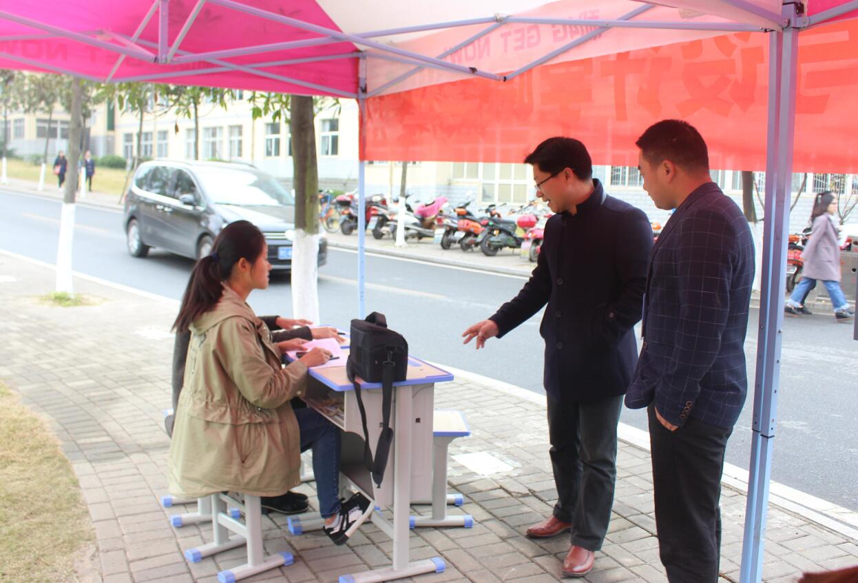 为及时向公司2018级毕业生提供最新就业信息,增加公司毕业生的就业机会,11月11日,信阳师范公司2018年冬季双选会在西篮球场热烈举行。公司积极响应公司号召,在西操场设立值班棚,及时为公司求职学子提供帮助。公司党委副书记杨轶中带领辅导员张锐、郑波亲临现场指导活动。