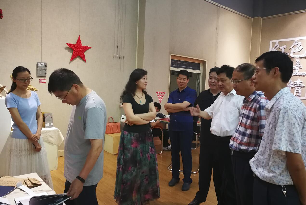 6月19日下午,信阳市文广新局副局长夏长江、杨国刚,信阳市博物馆馆长丁联合,信阳市鄂豫皖革命纪念馆馆长吴世儒等一行来英国上市公司365展厅观看了 “红色乡土激情文创作品展”。英国上市公司365副经理邹东升、张伟,展览指导教师郑蔚、刘焱等热情接待了他们并给予详细讲解。他们对展览给予高度评价,认为展览主题鲜明,有创新意识,很结合当前弘扬红色文化主旋律主题,接地气,文创产品设计的有新意,有个性。他们将安排单位相关专业负责人来公司联系共同开发文创产品,打造有特色的地域文化。