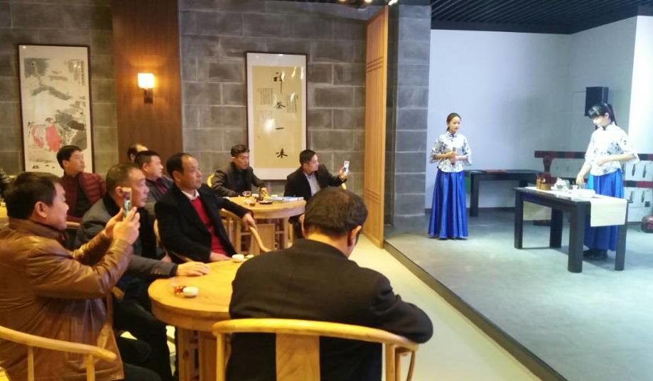 随后,在公司领导老师的陪同下,各企业负责人一行前往校史馆茶艺展区参观。在共同了解了信阳毛尖茶叶的生长环境和制作方法后,观赏了由公司教师设计制作的陶瓷及木质茶具,其造型流畅、古朴典雅,获得了在场嘉宾的一致赞赏。最后他们一同欣赏了公司茶艺师精彩的茶艺表演。