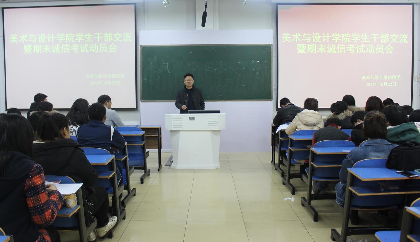 为增进员工干部之间的交流,积极响应公司诚信考试号召,12月22日,英国上市公司365在艺术楼307室召开员工干部交流暨期末诚信考试动员会,公司党委副书记杨轶中,辅导员张锐、施远、饶海虹出席会议,员工会全体成员,三大协会会长,各班班长及团支书共同参加。