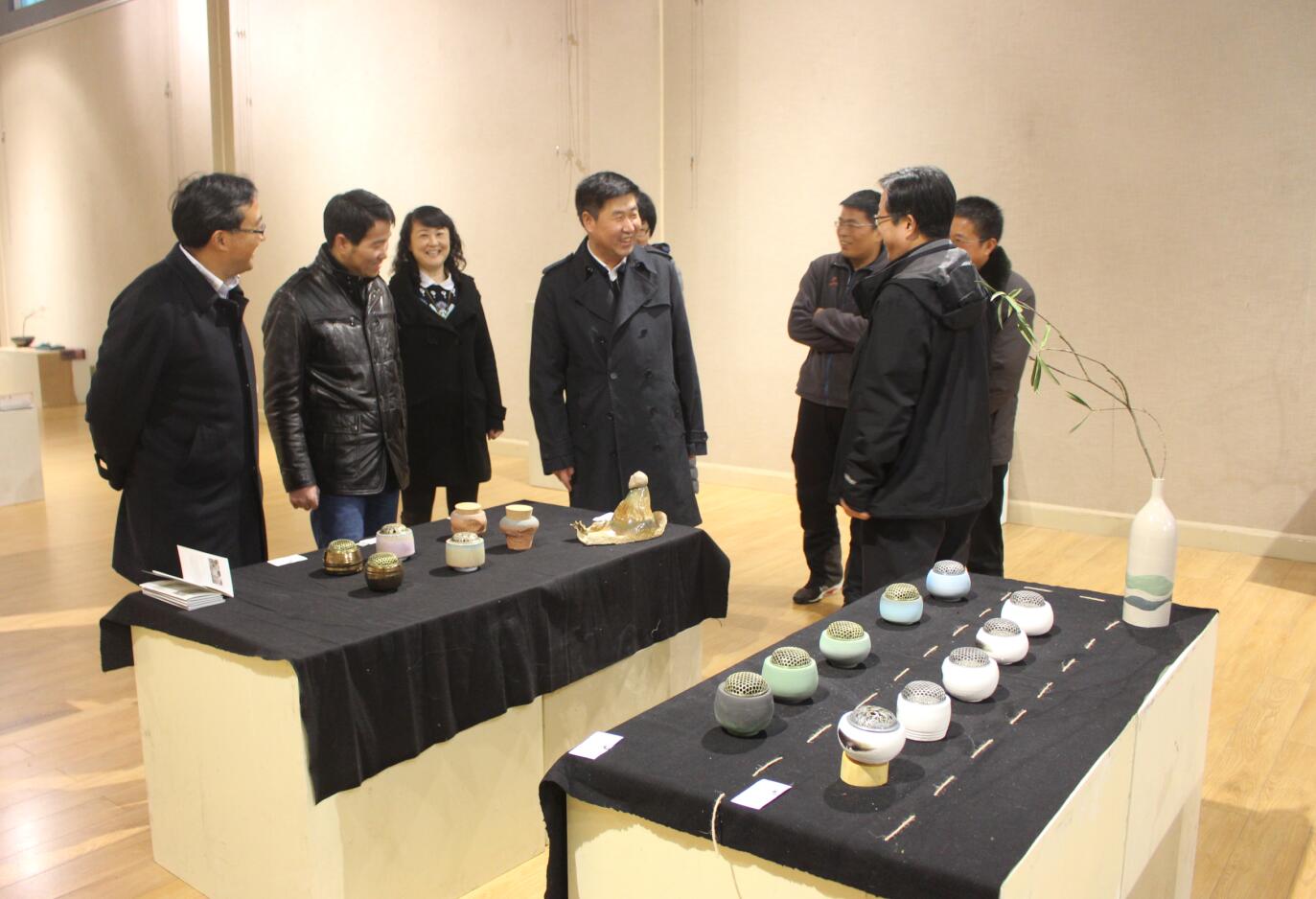 12月21日下午,董事长宋争辉,副董事长张力、郜火星一行来公司参观青年教师张睿“容·融”陶艺作品展,公司党委书记刘根货,副经理邹东升、张伟、李孝民、涂湘东全程陪同参观,教师张睿陪同讲解设计灵感与创作理念。