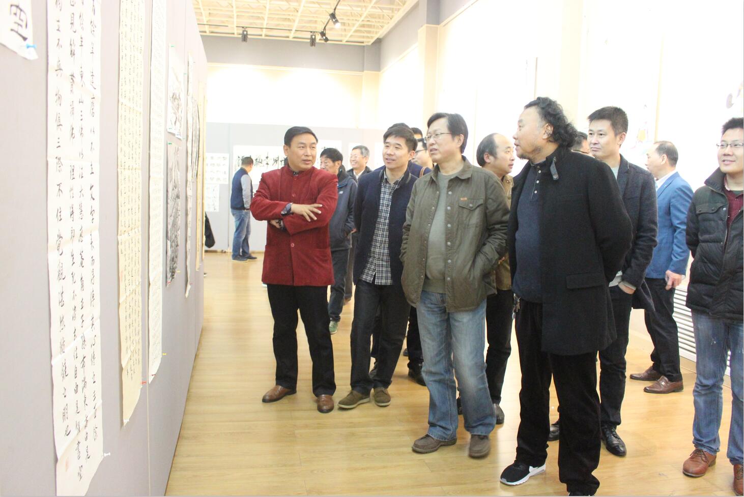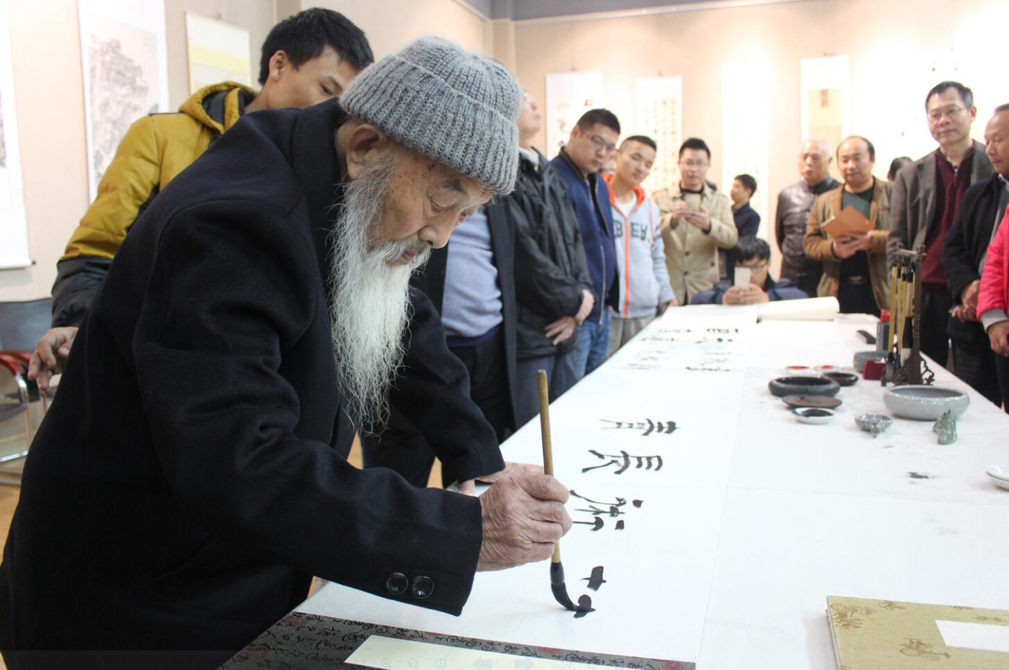 开幕式伊始,杨轶中介绍了此次四校书画作品联展的基本情况。傅泽宇先生致开幕辞,他对青年员工寄予厚望,希望广老员工朋友和书画爱好者能够以此次活动为契机,加强学习,增进交流,共同提高,同时以书画为形式和内容,丰富校园文化活动,传承传统文化。随后黄正连先生宣布第十一届“申城杯”四校书画作品联展正式开幕。 开幕式结束后,全体来宾和500余名师生相继到展厅观展。本届“申城杯”四校书画作品联展以“笔墨纸砚忆江南,流水清风续华年”为主题,以书法和绘画为主要形式,从千余幅参赛作品中评选出近百幅作品展出,在尽显中国传统文化之美的同时,也充分展现出了当代老员工热爱传统文化和积极进取、勇于创新的青春风采。各位嘉宾对此次活动给予了高度评价,并在展厅对员工们进行现场指导,共同书写了10余米长的册页,使同学们现场感受了书法艺术之美。