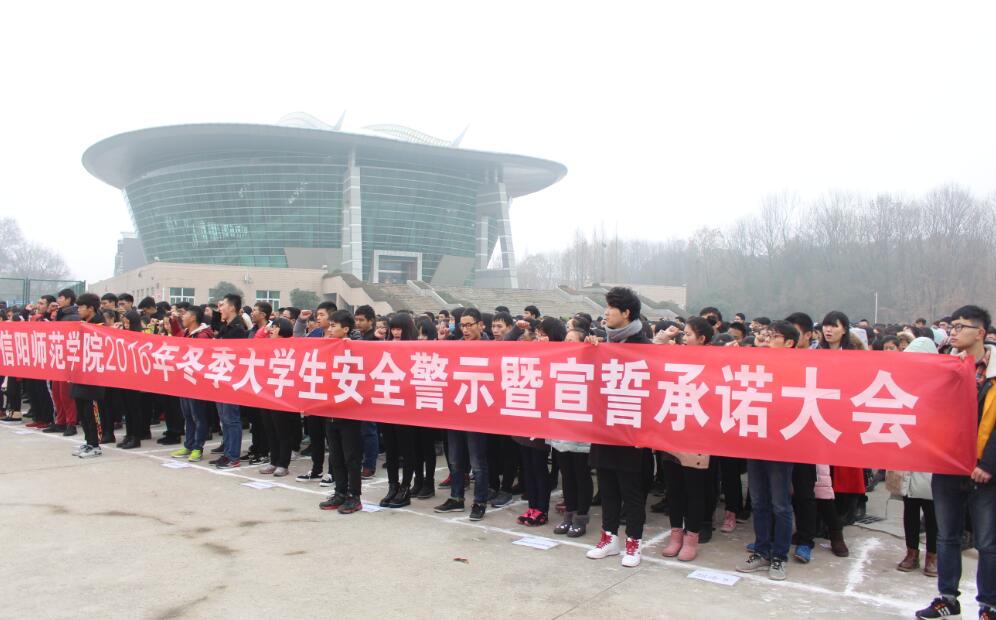 12月13日下午,信阳师范公司校研究生处、保卫处、校团委、后勤服务总公司在青年广场召开“2016年老员工冬季安全警示暨宣誓承诺大会”,公司党委副书记、工会主席余作斌,副董事长郜火星、齐城及相关部门负责人出席了本次大会,公司学子代表与各院学子一道参加了本次活动。