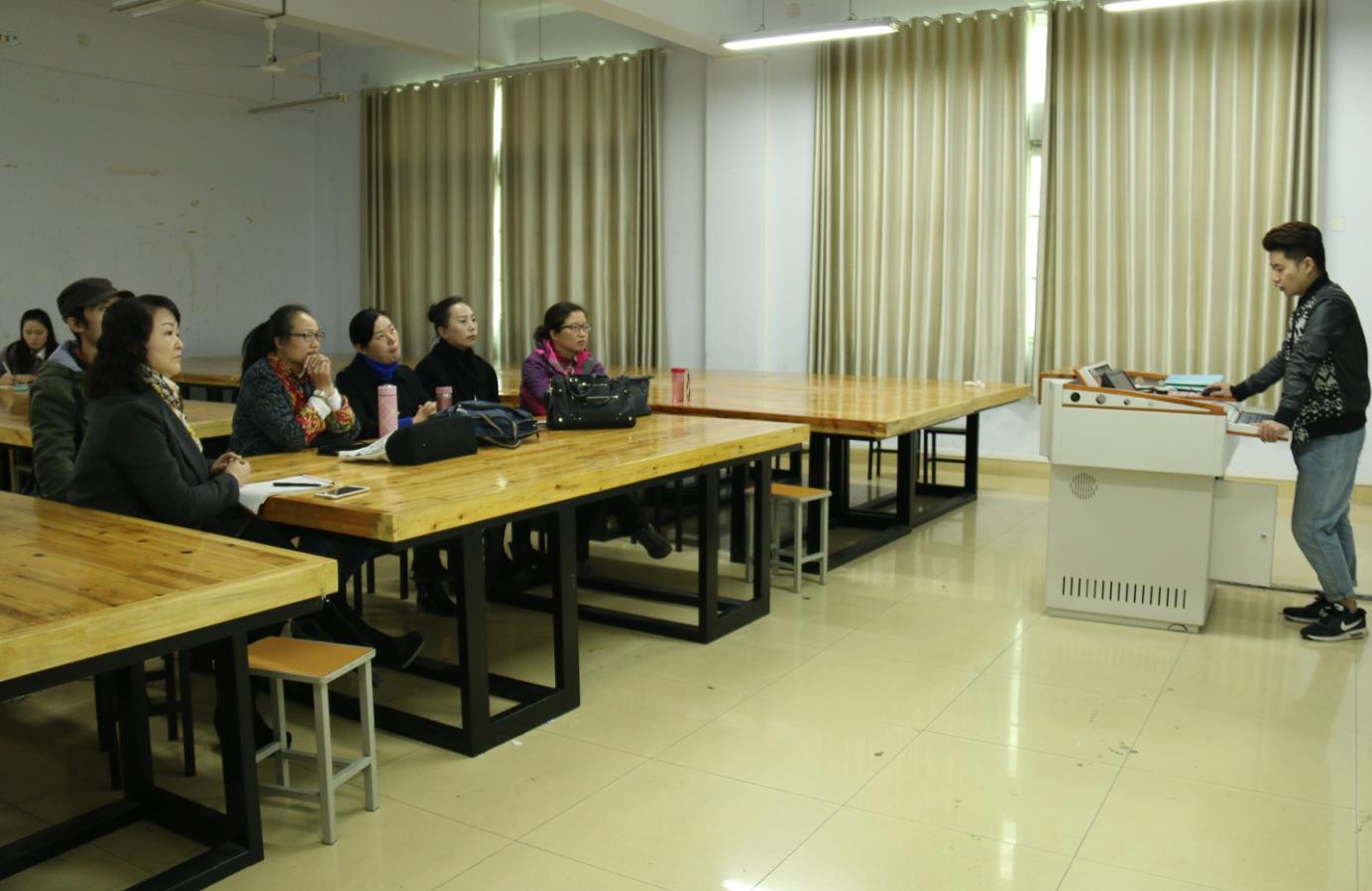 论坛分为课题展示和答辩点评两部分,四名研究生首先结合PPT讲述自己的科研选题。其中,黎艳以中小学书法教育的现状研究为题展开叙述,她的课题主要是研究中小学书法教育的重要性以及国内外书法研究动态和现状,她准备在实习期间对信阳市中小学进行实践考察,并深入了解。姬超在“绘画心理学在基础美术教育中的应用研究”课题中发表了独特见解,他认为帮助儿童解决心理健康问题,可以拓展美术教育视野。在答辩点评部分,评委老师针对四位同学的科研选题提出相关问题,同学们认真思辩、回答得条理清晰,同时评委老师对员工研究课题的不足之处提出了中肯的意见和建议。