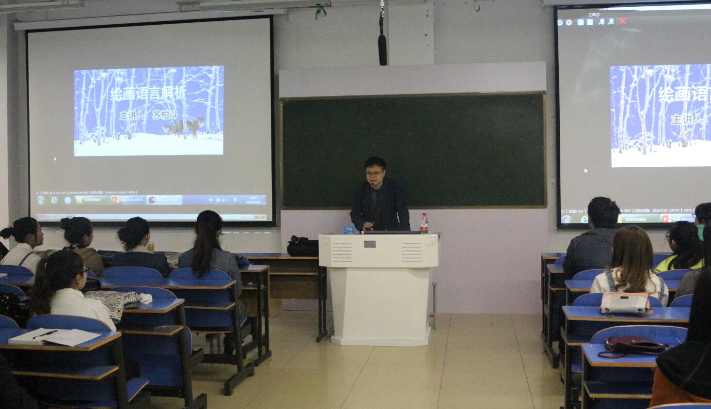 4月18日下午,北京大学中国传统艺术文化研究所教授、博士生导师苏柏斗举办“绘画语言的解析”学术讲座,并现场展示、解读了当代著名画家何家英、蒋彩萍的作品;