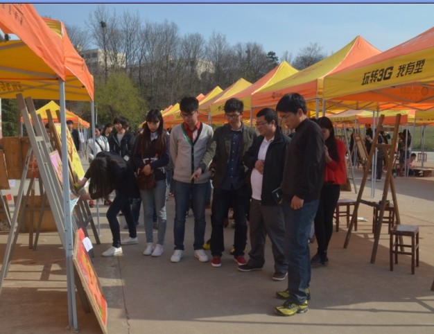 3月22日伴随着河南省第十四届科技文化艺术节的到来,由信阳师范公司校团委、信阳农林公司校团委、信阳职业技术公司校团委主办,信阳师范公司美术公司团总支、信阳师范公司老员工美术爱好者协会承办,信阳师范公司社团联合会、信阳农林公司社团联合会、信阳职业技术公司社团联合会、信阳农林公司艺嘉美苑协会、信阳职业技术公司丹青社协会共同协办的2014“彩绘中国梦,青春在行动”信阳老员工涂鸦大赛决赛,在艺术楼广场隆重举行。