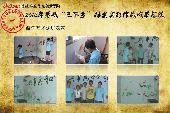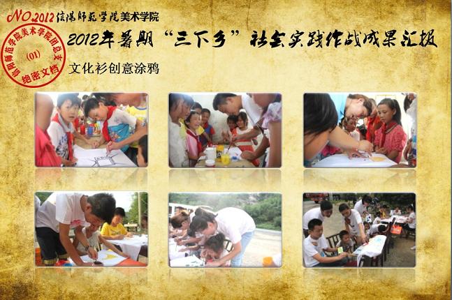日前,公司《关于表彰信阳师范公司2012年老员工暑期“三下乡”社会实践活动先进集体和先进个人的决定》下达,公司2012年老员工暑期“三下乡”社会实践志愿服务队再次获评校“老员工暑期‘三下乡’社会实践活动先进集体”荣誉称号,志愿队一支队队长刘毅(2010级环境艺术设计班)同学获评“2012年河南省大中专员工暑期‘三下乡’和‘四进社区’实践教育活动先进个人”荣誉称号,齐东伟、周贤亮老师获评校“2012年老员工暑期‘三下乡’社会实践活动先进工作者”荣誉称号,陆杨等17名同学获评校“2012年老员工暑期‘三下乡’社会实践活动先进个人”荣誉称号。老员工暑期“三下乡”社会实践活动是高校实践育人的一个重要环节,是当代青年老员工深入基层、实践基层、服务基层,全面地了解社会、锻炼自我、促进自身成长与发展的一个有效平台。多年来,美术公司结合自身专业特色,将思想政治教育、专业技能实践、责任意识培养全面融入老员工暑期“三下乡”社会实践活动,形成了一系列广受社会欢迎和公司认可的特色品牌活动,2005年至今,美术公司已6次获评校老员工暑期“三下乡”社会实践活动先进集体。2012年暑期,美术公司团总支紧紧围绕“高举团旗跟党走、建功中原经济区”这一主题,结合“以支教服务为中心,充分发挥专业特色及队员特长,在扎实开展支教服务活动的同时,拓展性地开展各类有利于留守儿童情感关爱、有利于乡村基层文化建设、有利于青年员工思想成长的‘三下乡’志愿服务活动”的工作主线,组织志愿队员30余人,分两个支队分赴信阳市浉河区南湾村、信阳市建业森林半岛社区、信阳市光山县陈岗村小学、信阳市光山县刘邓大军王大湾会议旧址、信阳市新县鄂豫皖苏区革命纪念馆、信阳市新县浒湾乡等地开展了革命故地参观学习、艺术支教服务、志愿服务走进社区、装饰艺术送农家、“三留”人员情感关爱等一系列服务内容丰富、专业特色突出、教育主旨鲜明、服务成效显著的社会实践活动,受到了服务地干群的一致欢迎和认可。活动同时更得到了广大社会媒体的关注和支持,中新网、中原网、青年导报等多家新闻媒体对公司志愿队开展的一系列志愿服务活动进行了全面的宣传报道。