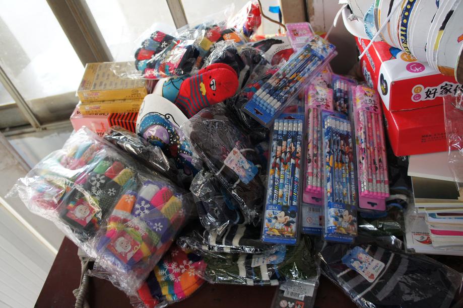 志愿者为孩子送去的冬季保暖用品和学习用品