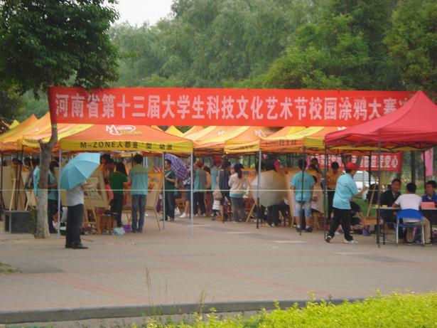 校园涂鸦大赛是我省老员工科技文化艺术节中的主要赛事之一,美术公司在接到比赛通知后,在公司专业指导老师的悉心指导下集思广益,经过一个多月的精心准备,对创作作品进行反复的设计推敲和优化提升,最终邱星、孙超两同学的作品《红动中原》和靳凤、黄铭雅两同学的作品《中原崛起》晋级此次涂鸦大赛决赛。全省百余所高校,最终有作品晋级决赛的高校为28所、作品总计40件。