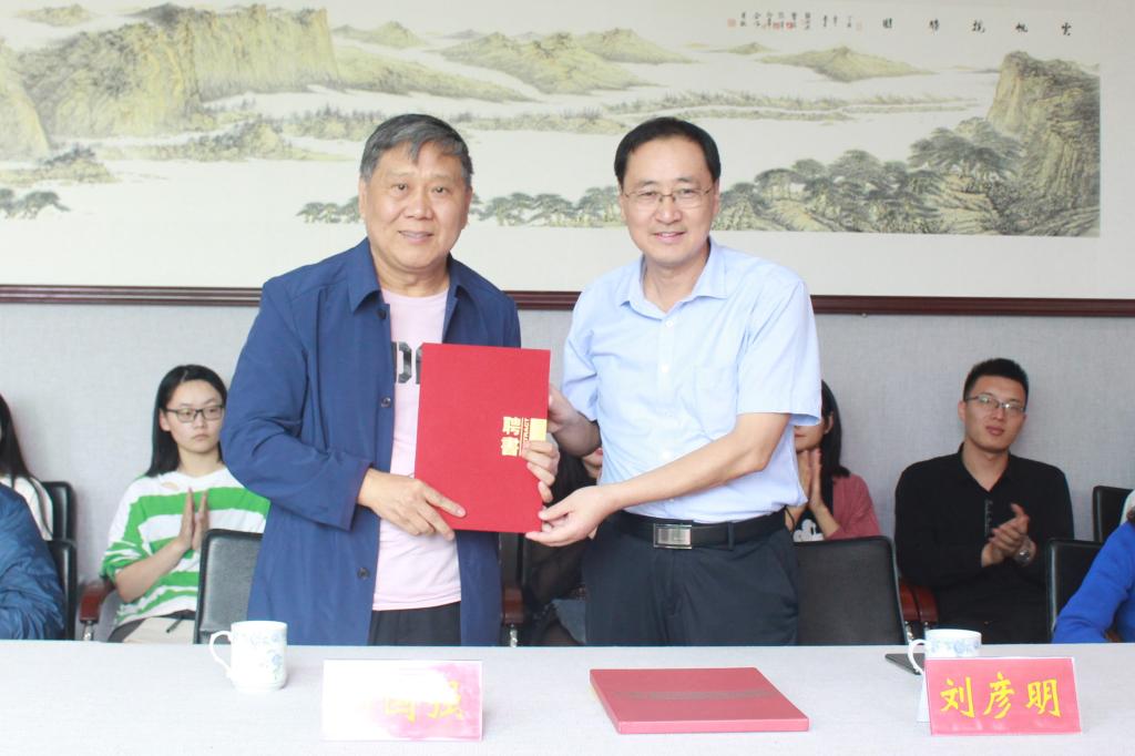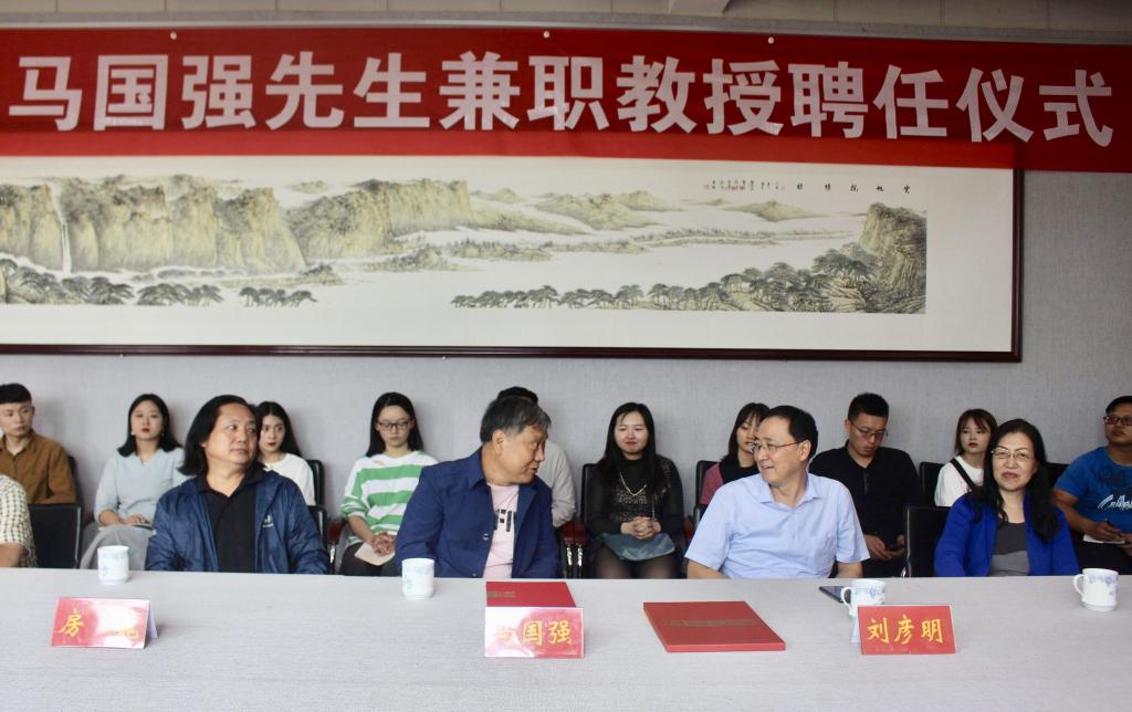 刘彦明为马国强颁发了兼职教授聘书,对其加盟表示欢迎。并对公司今后的发展提出了殷切的期望,希望公司进一步加强团队队伍建设,培养出更多优秀的艺术专业人才。