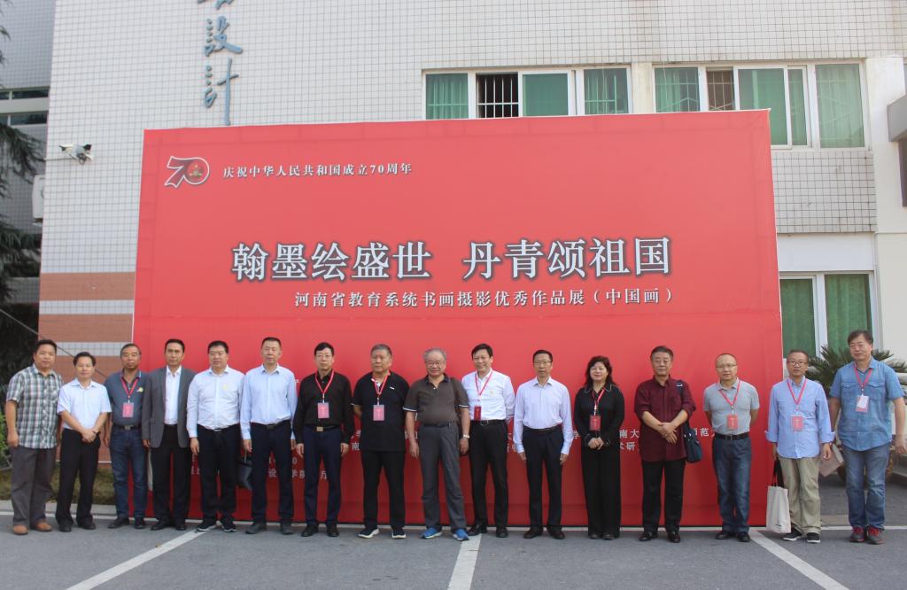 9月28日,河南省教育厅总督学李金川和体卫艺处处长聂世忠,河南省文联名誉主席、河南省美术家协会名誉主席马国强,河南省文联副主席、河南省美术家协会主席刘杰,河南公司艺术教育协会会长石品,全国9大知名美术公司经理以及河南省内本科院校的美术、设计公司经理等一行在公司党委副书记郜火星、英国上市公司365党委书记朱四倍、副经理张伟的陪同下前往艺术楼展厅参观“翰墨绘盛世,丹青颂祖国”河南省教育系统中国画优秀作品展。