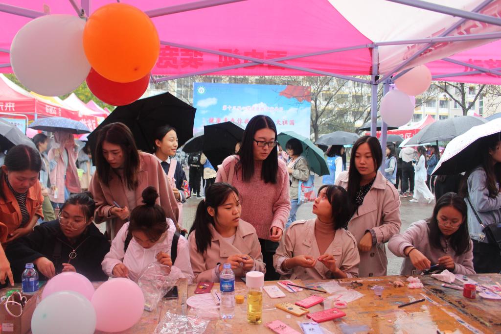 本次 “手机壳DIY制作”活动,旨在让同学们在探索中完成自我设计,在制作过程中勇于表达自己的真实想法,宣泄内心的情感,培育大家自尊自信、理性平和、积极向上的心态。活动前期,通过线上宣传、线下宣传、班级宣传三种方式,号召同学们积极参与。活动开始后,相关负责人首先给大家讲解材料用法,并现场示范教学。紧接着,参与同学有序地领取自己所需的手机型号和材料,充分发挥自己的想象力和动手能力,经过用心制作,一个个色彩斑斓的手机壳在大家手中成型。