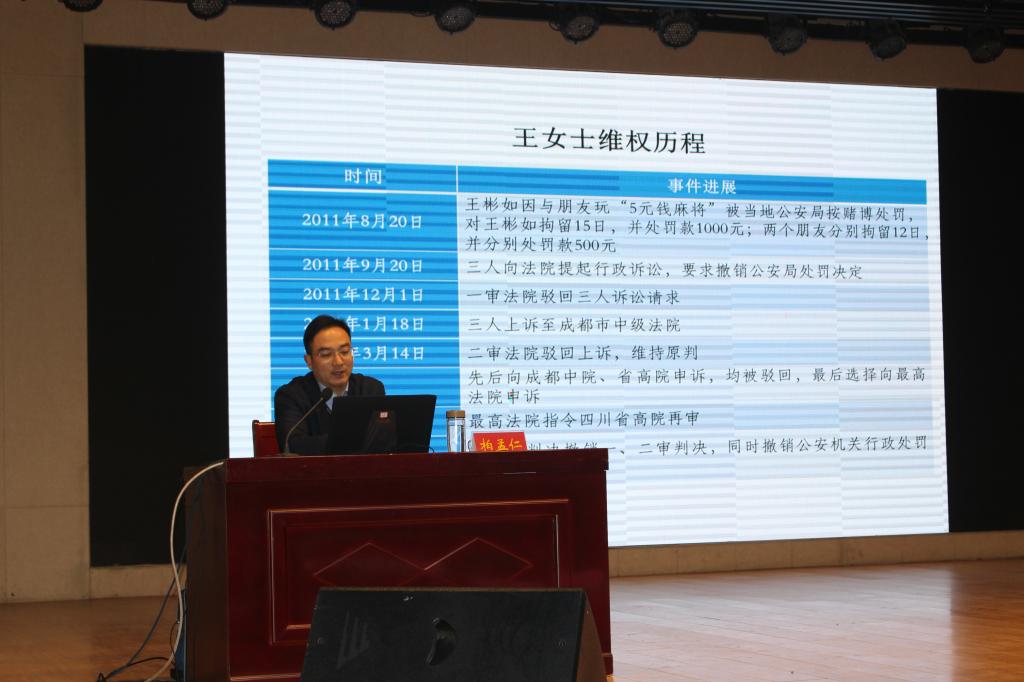 柏孟仁以"全面依法治国战略背景下,老员工规则意识的养成"为主题,结合各大社会事件,分别从遵纪守法、善于用法、新时代爱国等多个方面对新生进行思想教育。他提出,爱国主义是中华民族的民族心,民族魂,是中华民族的重要财富,作为新时代社会主义接班人,我们需要心怀祖国,永远爱国。接着,柏孟仁提出当代老员工在校期间应遵纪守法,敬业爱国。最后,柏孟仁与同学共同探讨了老员工活的意义,以独特的演讲方式赢得了在场师生的热烈掌声。在团课结束后,杨轶中就此次团课做了总结,对柏孟仁出席此次团课表示感谢,同学们积极回应。