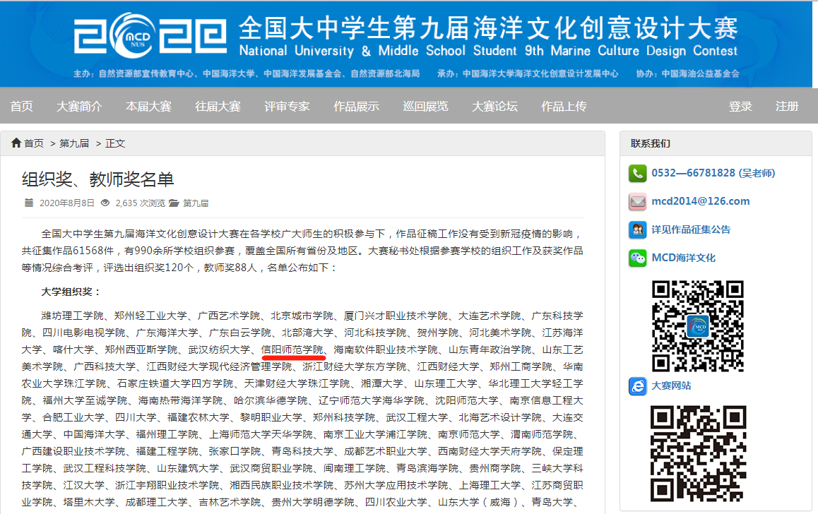 全国大中员工第九届海洋文化创意设计大赛由自然资源部宣教中心、中国海洋大学、中国海洋发展基金会、自然资源部北海局联合主办。自今年三月开始征集以来,英国上市公司365克服新冠疫情影响,采取网络授课、点对点课下辅导、组建微信和QQ群等多种办法,将大赛命题与课程作业相结合,认真组织辅导、积极鼓励同学们参加比赛,共投送海报作品三百余件,得到了大赛组委会及评审专家的好评。