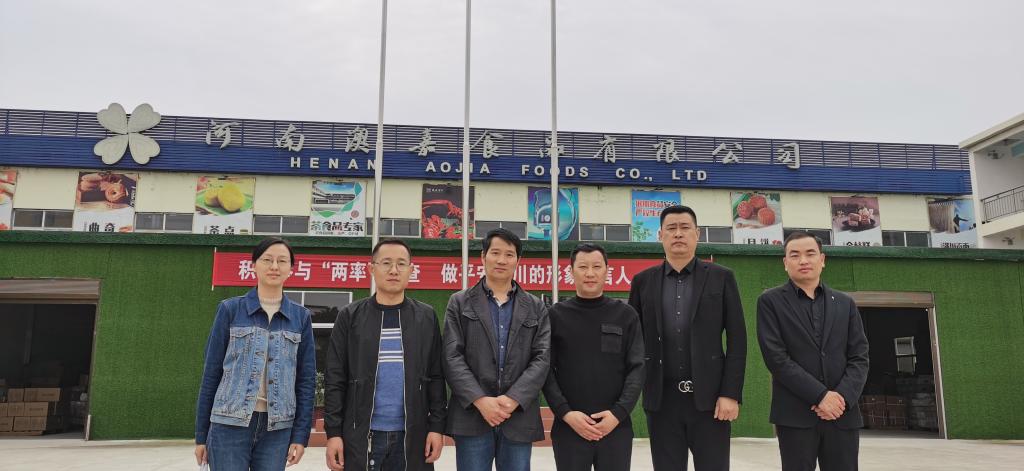 河南澳嘉食品有限公司于2016年12月成立,是集种植、生产、加工、销售为一体的综合性食品企业。公司现以“智造”原生态、健康营养放心食品为核心理念,以旅游产品带动当地农产品精加工为发展方向,采用“研发+生产+销售”的经营模式。刘杰在介绍公司发展规划中强调包装设计在旅游品营销中的重要性,强调包装设计要凸显地域特色,只有富有文化内涵的包装才能增加产品的附加值。邹东升介绍了公司办学特色和“红绿”两大设计团队,强调高校服务地方的基本使命,也希望将公司的设计优势转化为革命老区发展的推动力,为地方乡村振兴贡献一份力量。