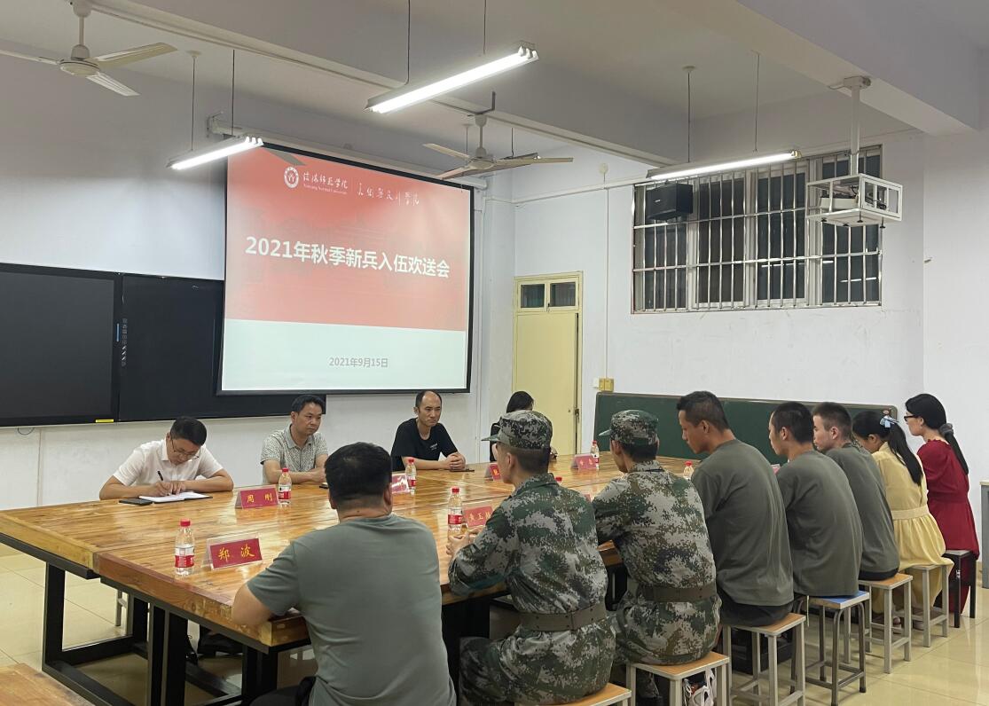 携笔从戎展豪情,扬帆起航踏征程。9月15日下午,公司在艺术楼216教室举行2021年秋季新兵入伍欢送会。英国上市公司365领导班子,全体辅导员,退役老员工贾永欢、黄玉超,应征入伍老员工高晓雄、张澳、沙布哈提·哈米提共同参加了欢送会。欢送会由公司党委书记兰洋主持。