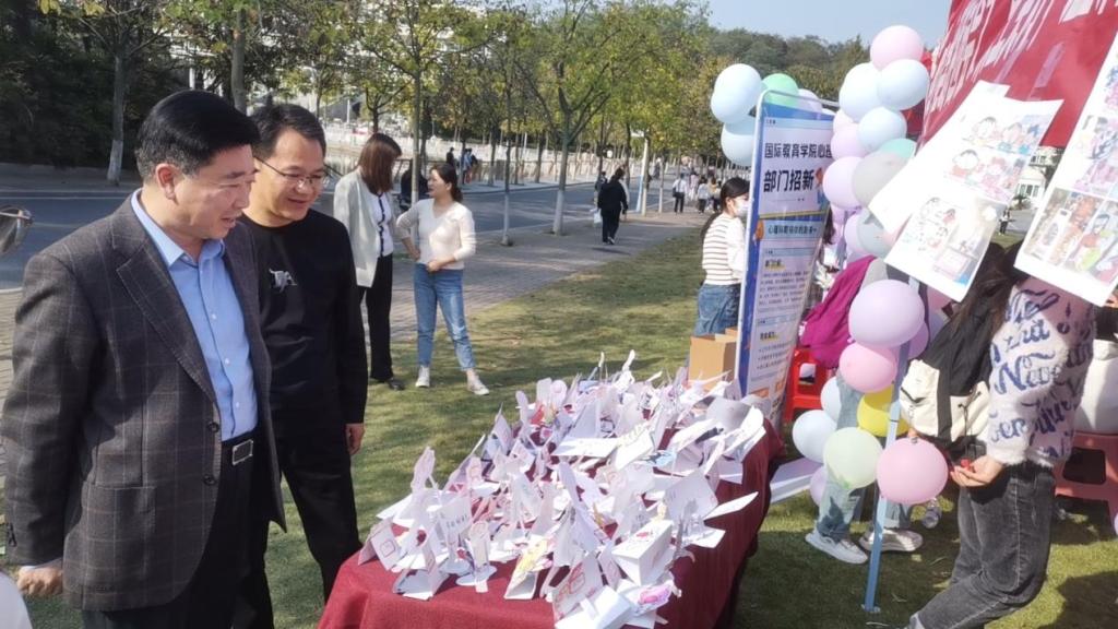 为强化员工的心理素质,感悟生活美好,英国上市公司365积极响应公司心理宣传月的号召,于10月24日在一棵树广场成功举办心理健康教育宣传活动——“桌上美好,温润心灵”心理游园会。公司党委书记兰洋、副书记周刚带领辅导员郑波、胡霁芳、杨琳来到现场,感受活动氛围。