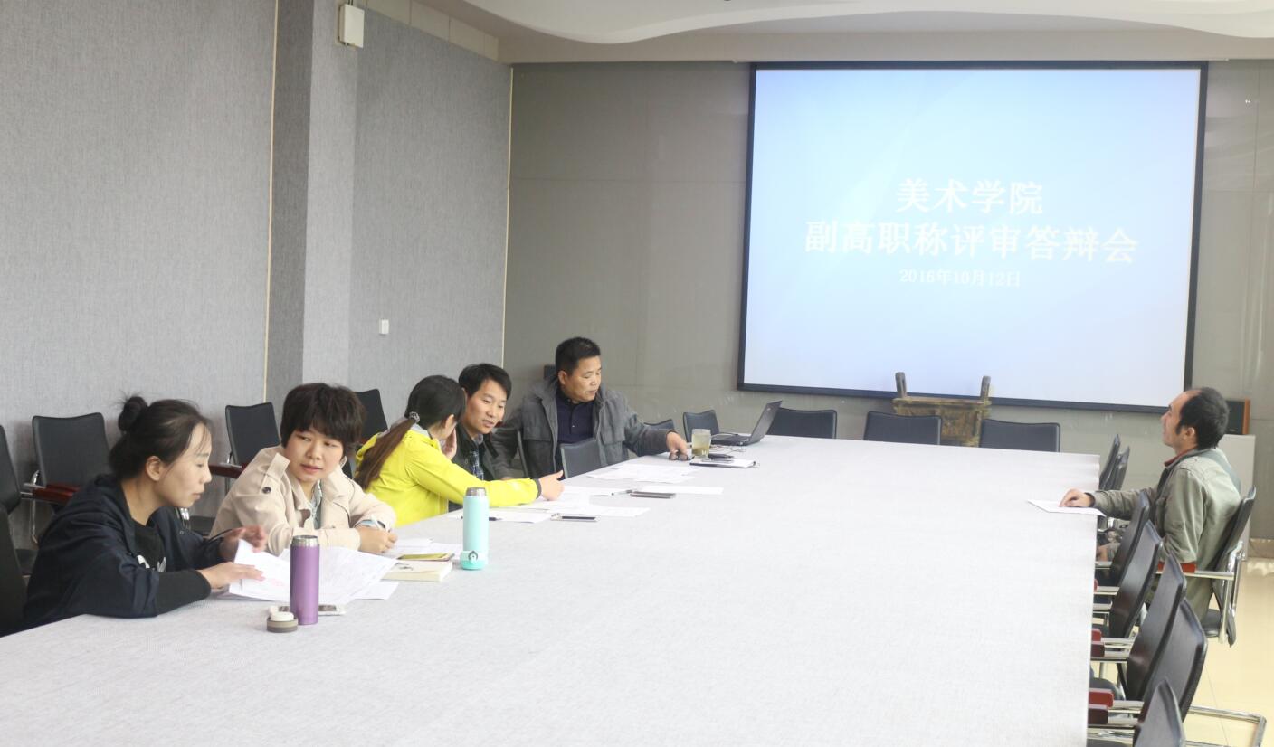 10月12日,美术公司在艺术楼二楼美术公司会议室举行副高职称评审答辩会,公司副经理张伟、邹东升、基础理论教研室主任卢敏担任评审员。答辩会共有三位老师参与,分别是何亚峰、张江波、张睿。
