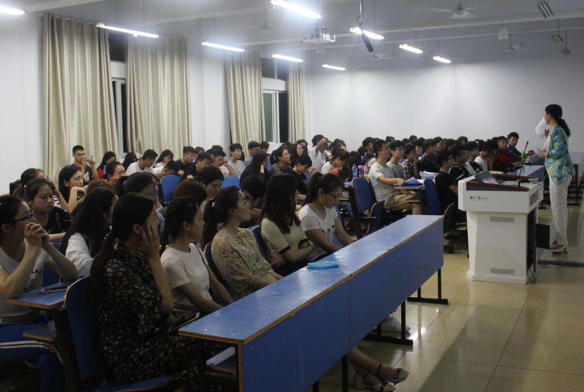 讲座围绕背景分析、课程设计、实施与效果三部分展开。讲座伊始,涂湘东为在座同学简单介绍了二十一世纪的教育问题,在国际大形势下,终身学习在全球广泛开展。之后,涂湘东重点强调了课程设计问题,并结合实例具体说明了课程内容的设计与选择、空间氛围的营造、作业与网络课程完成学习过程的监督、激发学习者潜能,调动学习者的学习兴趣等七方面内容。她表明教师可与员工进行角色互换激发员工对课堂的兴趣,提升自主学习能力。最后,涂湘东讲解了实施所取得的效果,并展示了教师文化艺术节取得的佳绩。现场气氛热烈,在场学子纷纷表示受益匪浅。